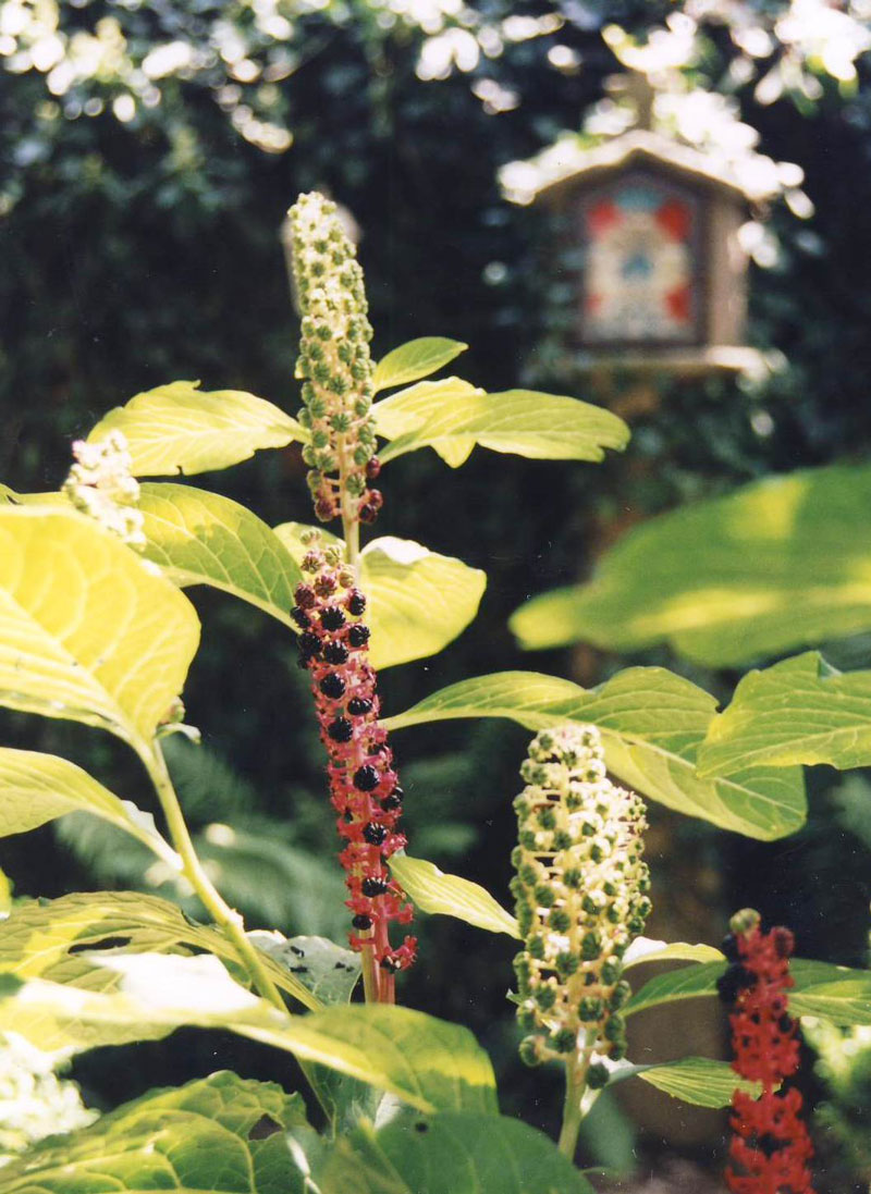 Im hinteren Teil des Gartens wachsen unter anderem arzneilich bedeutsame Pflanzen wie der Aaronstab (Arum maculatum). Der geschützte Aaronstab mit seinen knallroten Beeren ist giftig. Früher z.B. von Hippokrates bei Lungenkrankheiten empfohlen. Auch Hieronymus Bock erwähnt den Aaronstab, er schrieb u.a. das KREÜTTERBUCH (1539). Auch die Kermesbeere (Phytolacca spec.) ist zu finden.
